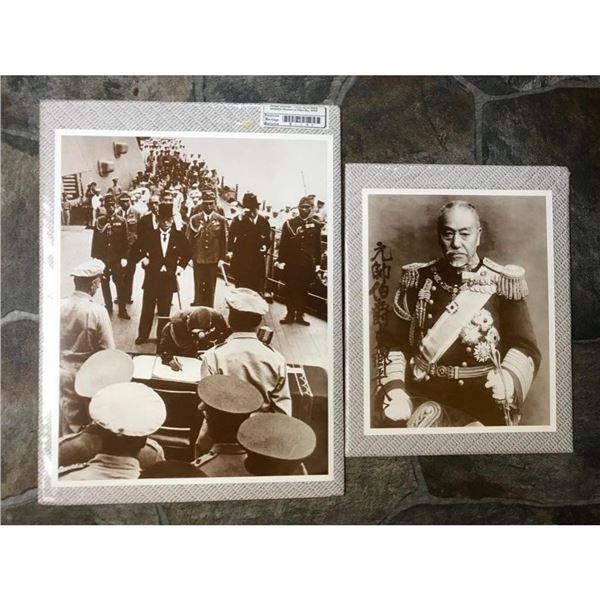 Pair of sepia-tone photo prints, World War II, Japanese subjects. Japanese fleet Admiral Heihachiro Togo & Formal SurrenderÂ
