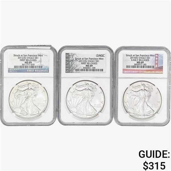 [3] 2012-S&2014-S Silver Eagle NGC MS69
