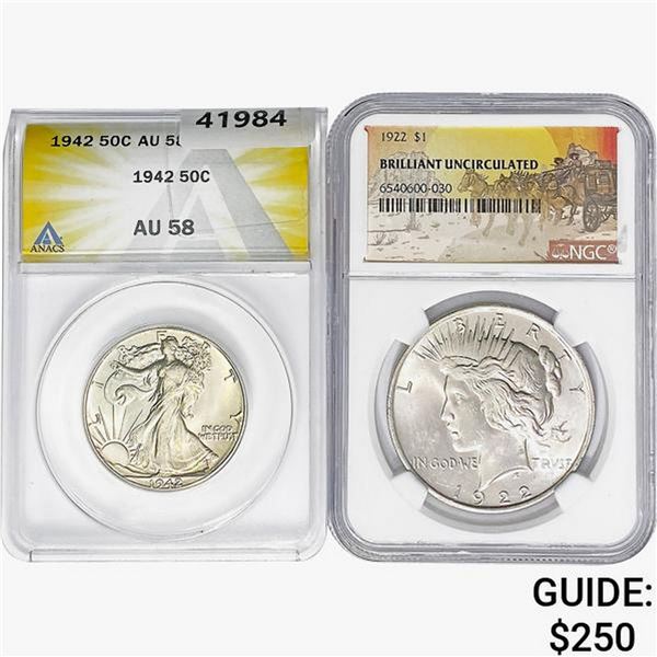 [2] 1922&1942 50C & Morgan $1 ANACS/NGC