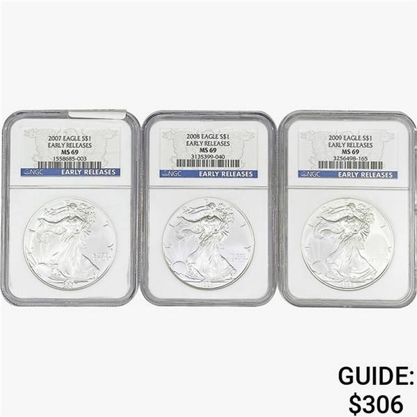 [3] 2007-2009 Silver Eagle NGC MS69 ER