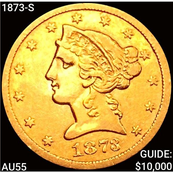 1873-S $5 Gold Half Eagle HIGH GRADE