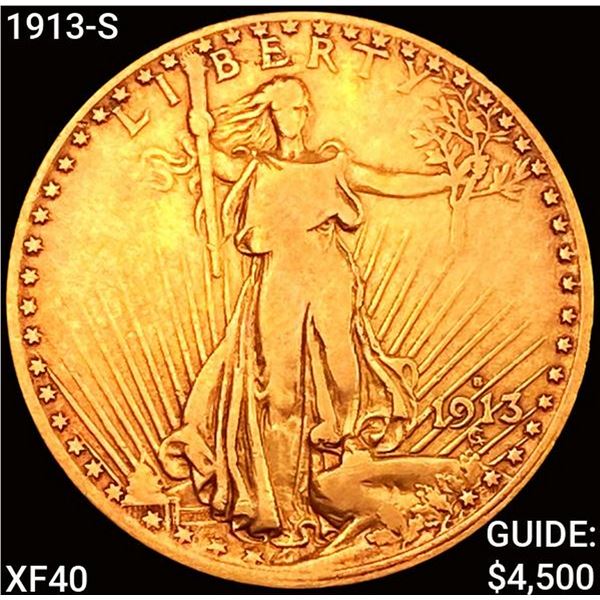 1913-S $20 Gold Double Eagle NEARLY UNCIRCULATED