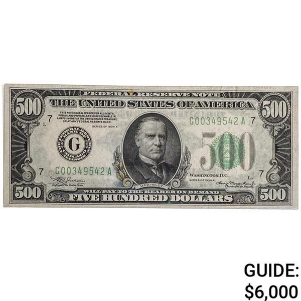 1934-A $500 FRN CHICAGO, IL ABOUT UNCIRCULATED