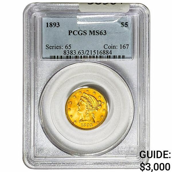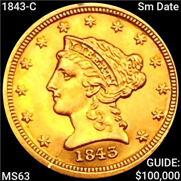 1843-C Sm Date $5 Gold Half Eagle CHOICE BU