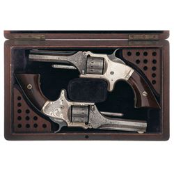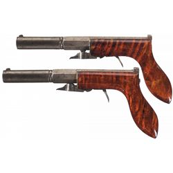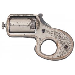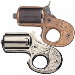 Manufactured in the 1890s these pistols featured a rebated barrel with a band of floral engraving, removable side plate with