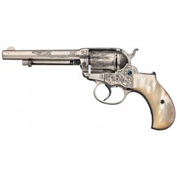 Magnificent Documented Factory Engraved Colt Model 1877 Double Action Thunderer Revolver with Pearl
