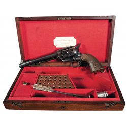 Estimate: $5500 - 7500 Manufactured in 1878. This revolver is one of only 729 Single Action Army revolvers chambered in the 45 Boxer caliber. This