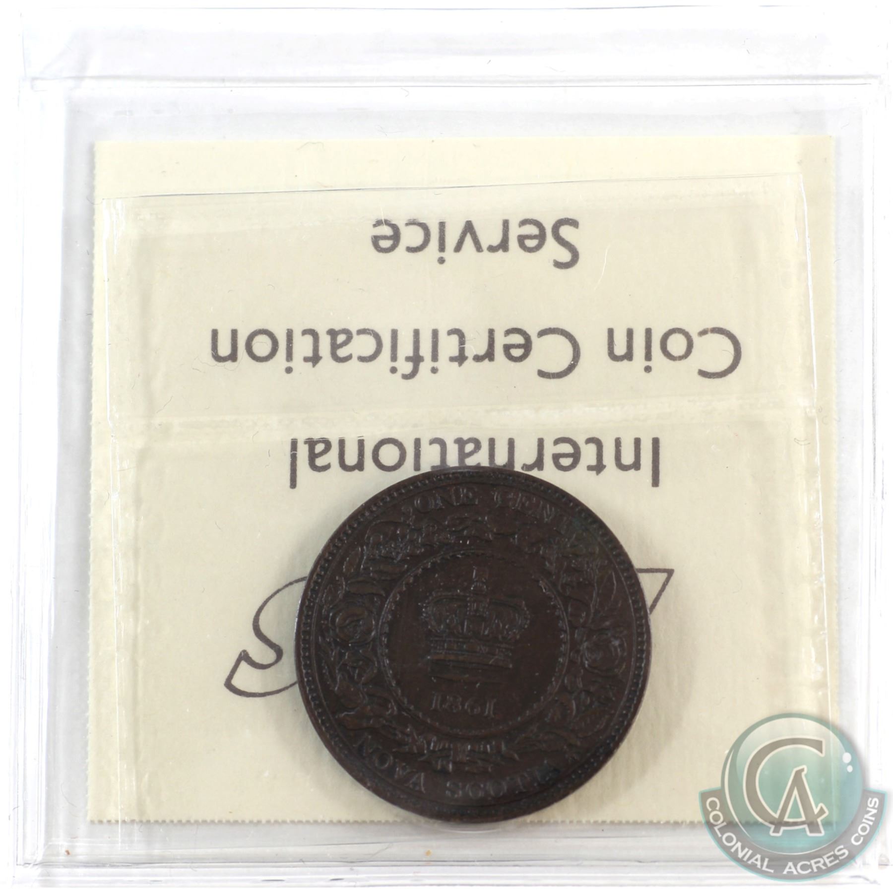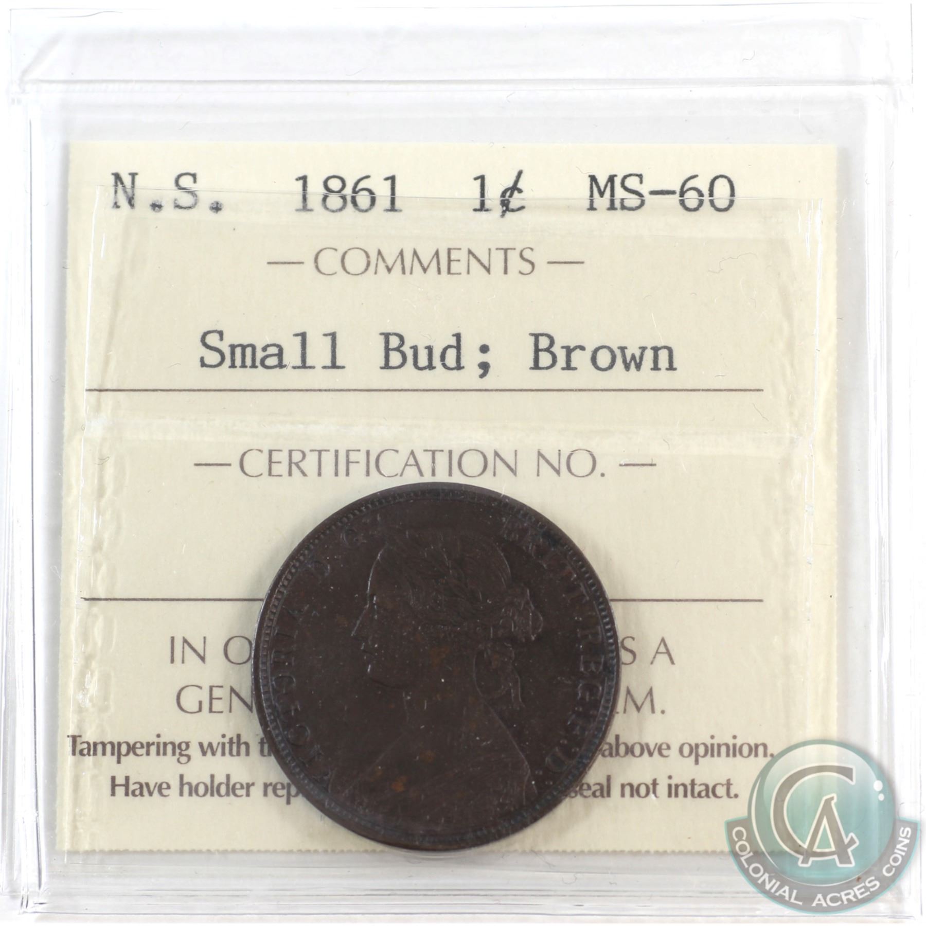Nova Scotia 1-cent 1861 Small Bud ICCS Certified MS-60 Brown. An attractive coin with even deep chocolate tones.