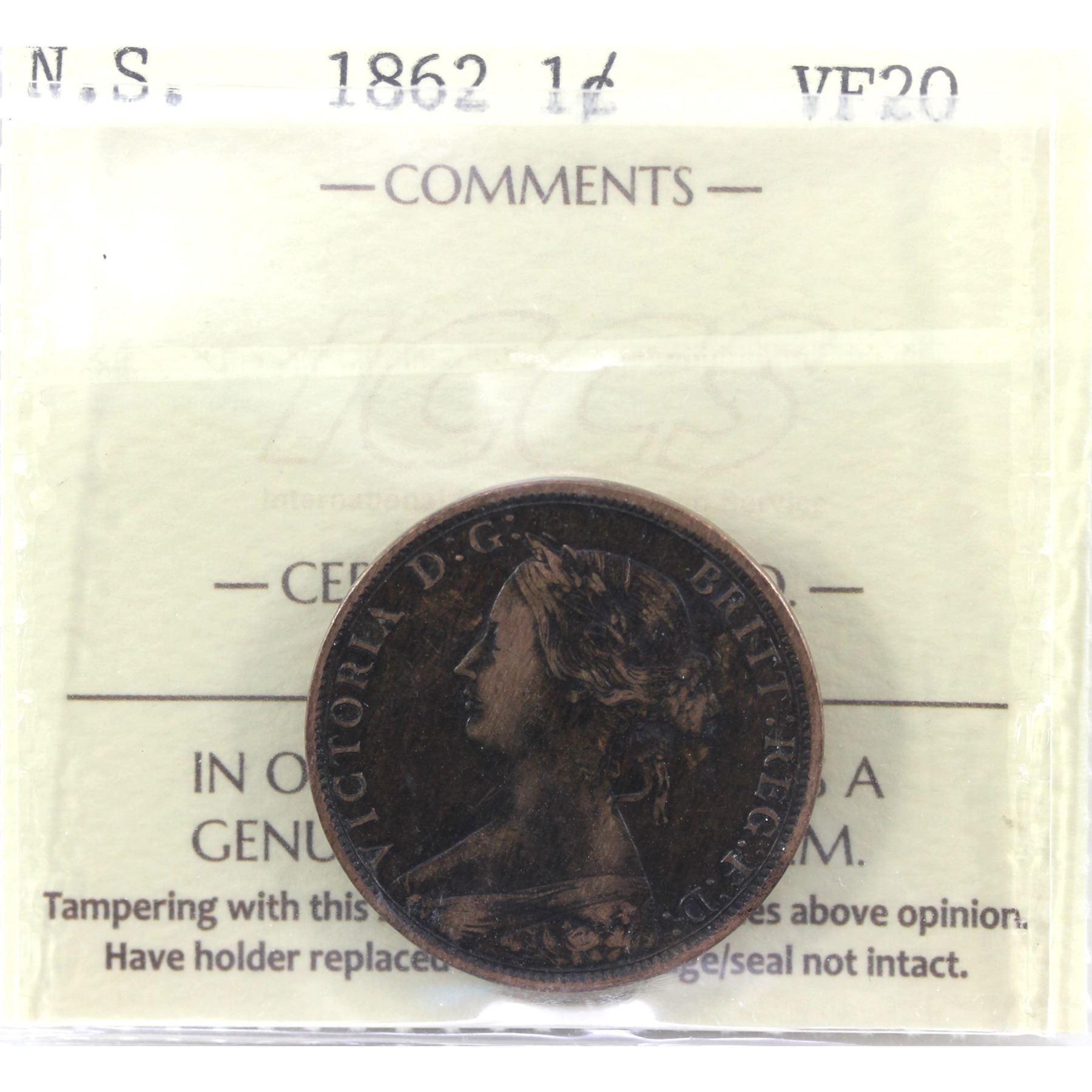 Nova Scotia 1-cent 1862 ICCS Certified VF-20