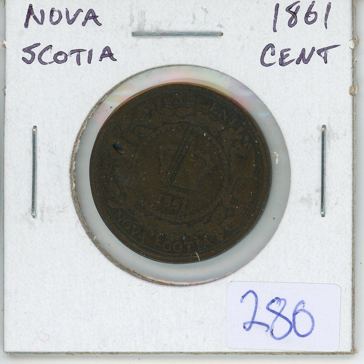 Nova Scotia 1861 Cent. Good. Holed with marks.