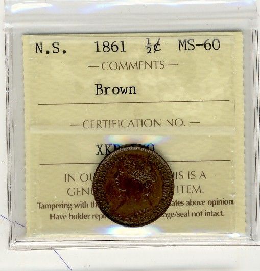Nova Scotia 1861 Half Cent, ICCS MS60; Brown.