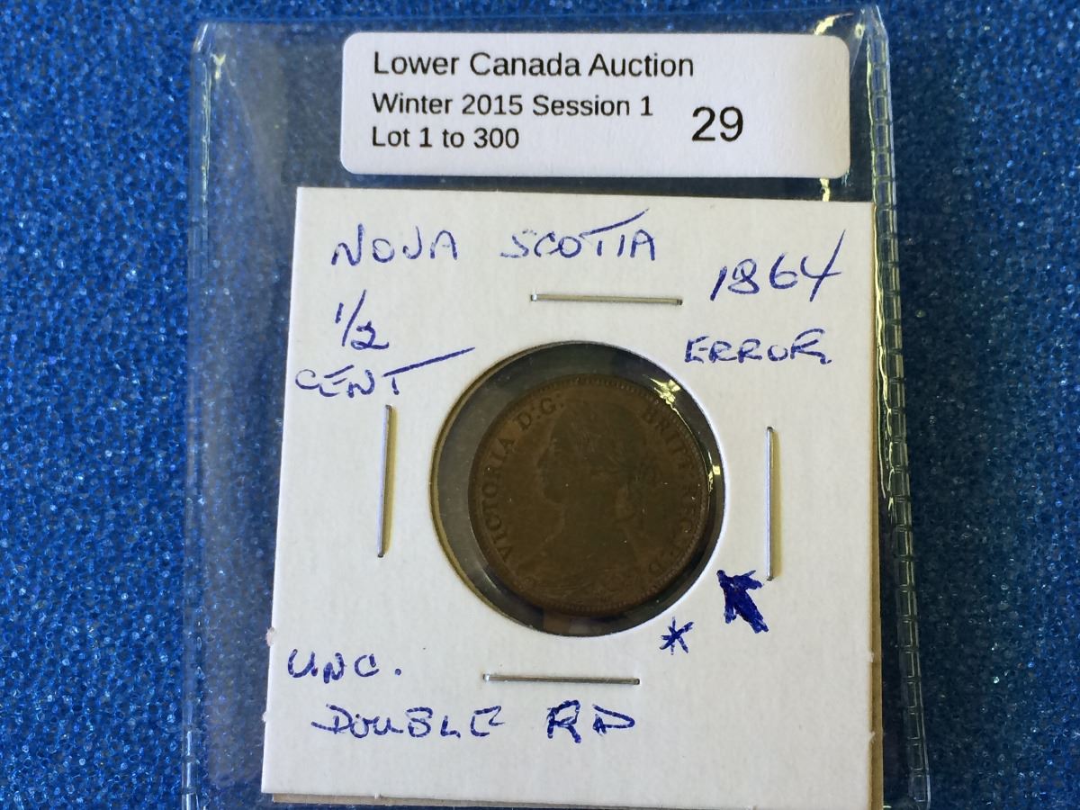 Nova Scotia 1864 1/2 cent AU-UNC, doubling on D