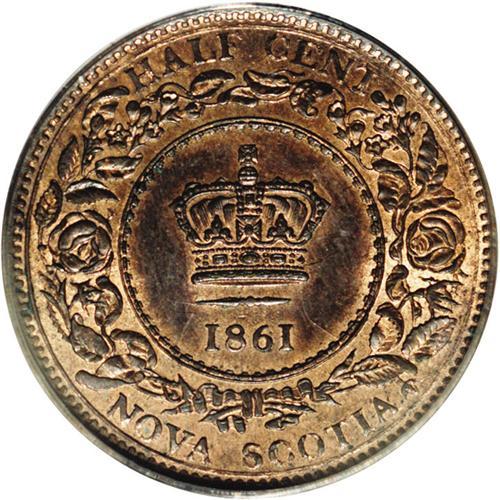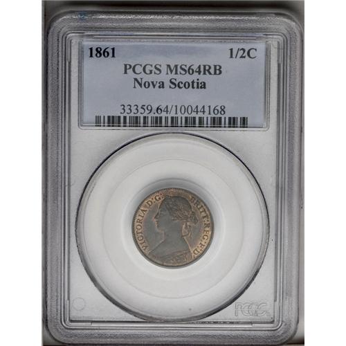 <B>Nova Scotia, Half Cent 1861,</B></I> KM7, MS64RB PCGS, a super problem free coin with great sharpness to the strike and quite scarce in higher grades.