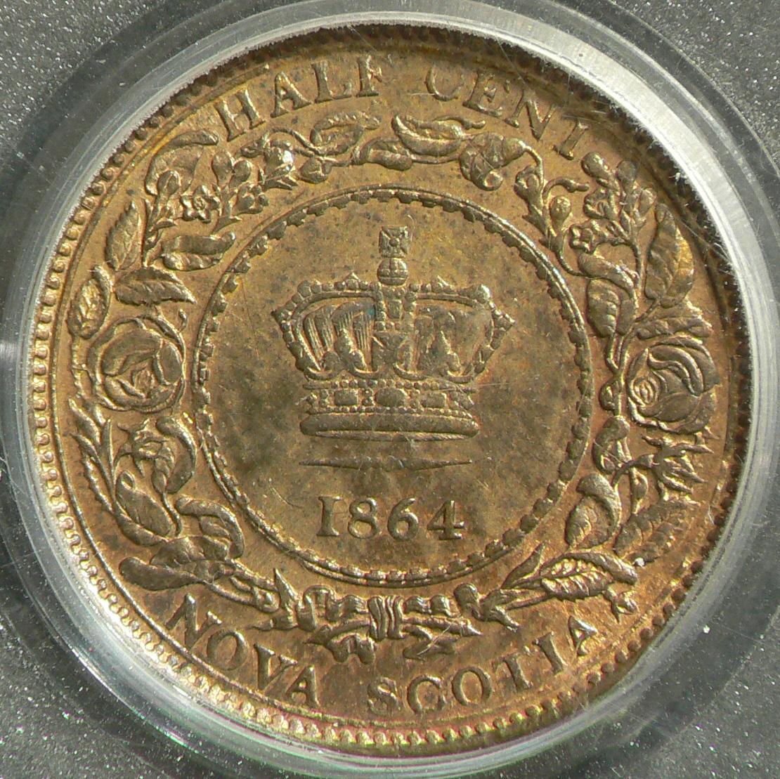 Nova Scotia Half Cent 1864, graded PCGS MS64 Red & Brown
