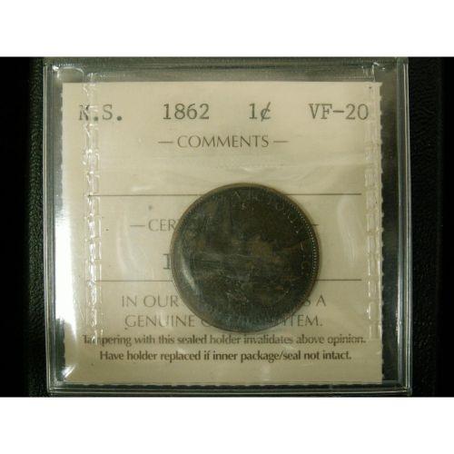 Nova scotia 1862 1¢ ICCS VF20, nice problem free coin