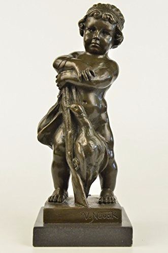 Absolutely Stunning, The Child With Duck Bronze Sculptureis A Charming Piece For Your Decor. A Young Child Plays Lovingly With His Pet Duck As He Holding A Rifle. Beautifully Crafted, YouLl Find That You Just CanT Get Enough Of This Lovely Statue. It Might Just Make You Do A Double Take! Since Beauty Is In The Details, Each Piece Of Our Bronze Is Cast In The Traditional Lost Wax Method And Finished With A Multi-Toned Antique Verdigris Patina, Which Guarantees Lasting Beauty. This Is An Unparalleled Bronze Statue, Reminiscent Of The Finest Victorian Art! Bronze dimensions with marble base: Height 10 X Width 4 inches. Weight: 6 lbs.