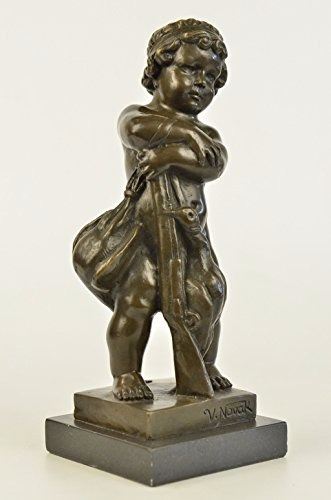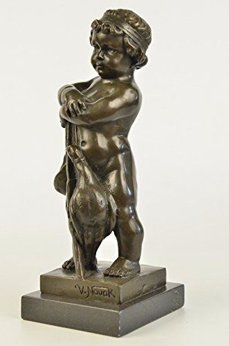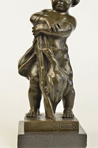 Absolutely Stunning, The Child With Duck Bronze Sculptureis A Charming Piece For Your Decor. A Young Child Plays Lovingly With His Pet Duck As He Holding A Rifle. Beautifully Crafted, YouLl Find That You Just CanT Get Enough Of This Lovely Statue. It Might Just Make You Do A Double Take! Since Beauty Is In The Details, Each Piece Of Our Bronze Is Cast In The Traditional Lost Wax Method And Finished With A Multi-Toned Antique Verdigris Patina, Which Guarantees Lasting Beauty. This Is An Unparalleled Bronze Statue, Reminiscent Of The Finest Victorian Art! Bronze dimensions with marble base: Height 10 X Width 4 inches. Weight: 6 lbs.