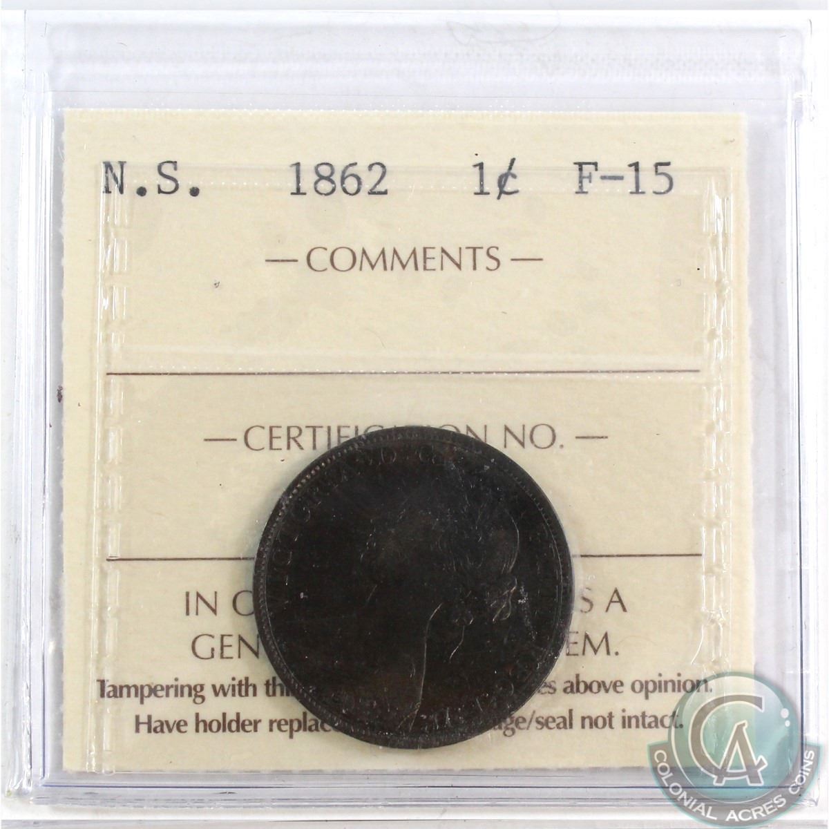 Noval Scotia 1-cent 1862 ICCS Certified F-15 *Key Date*