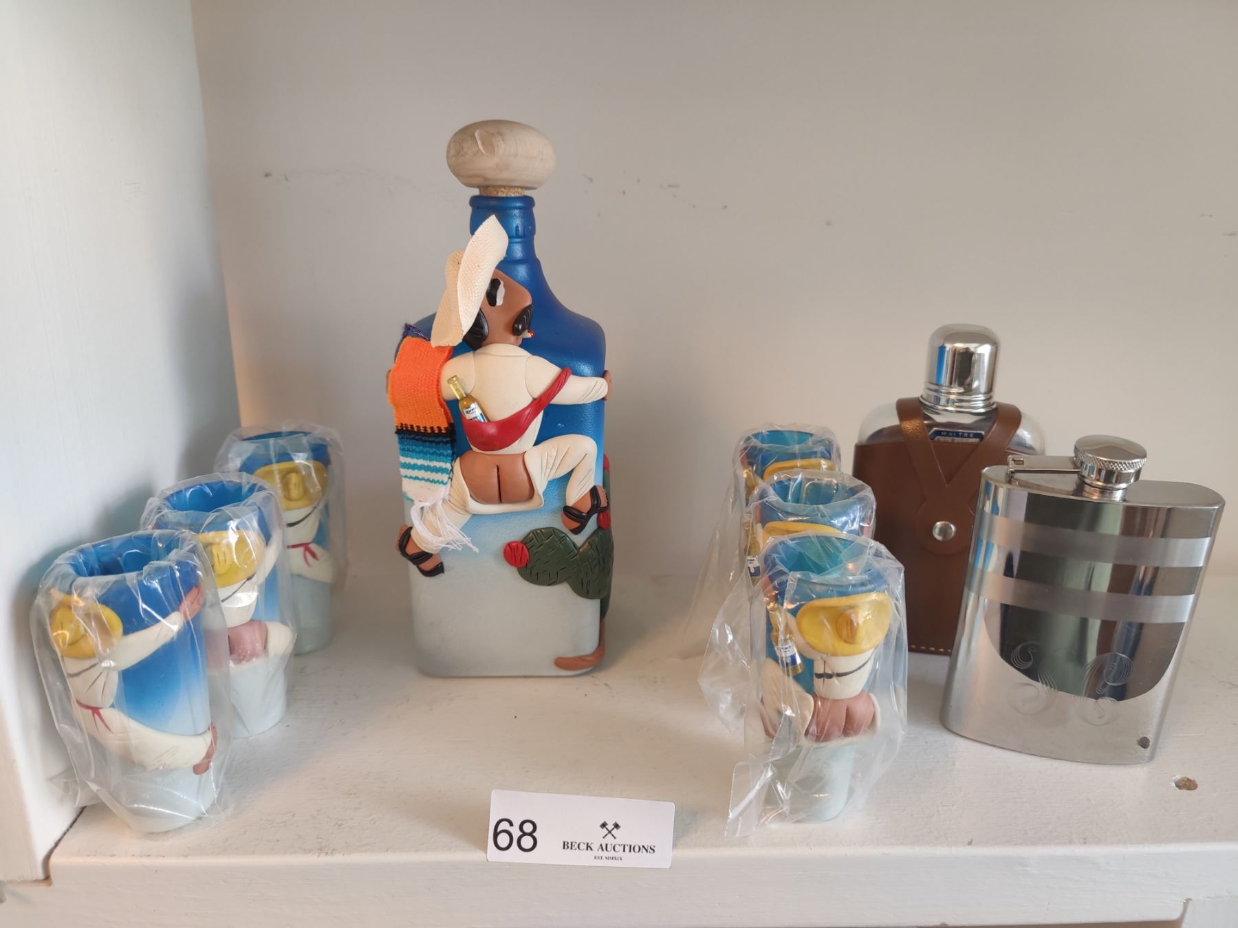 Novelty Mexican Tequila Decanter with Matching Shot Glasses & 2 Flasks