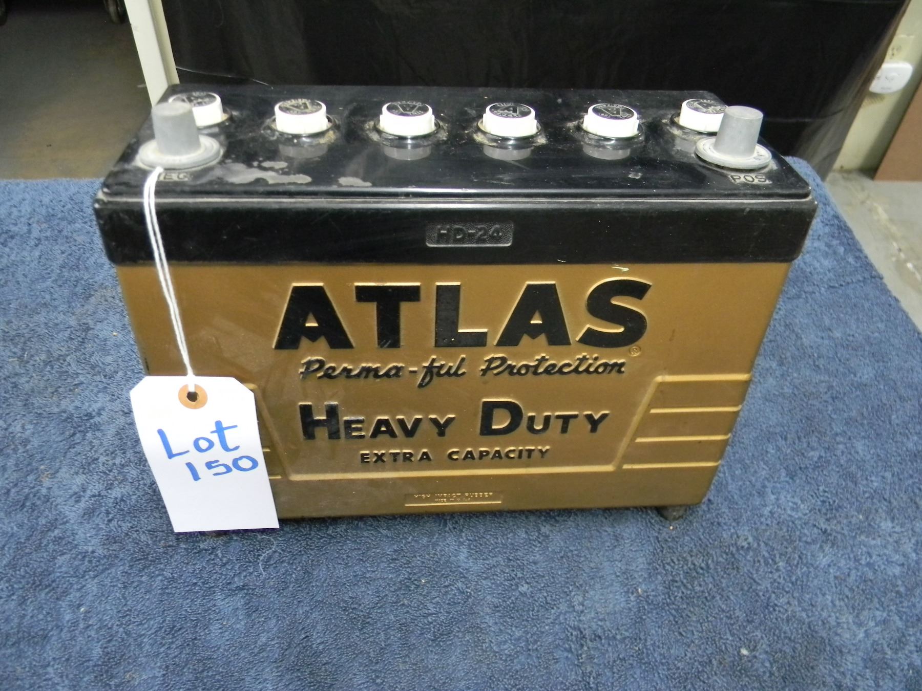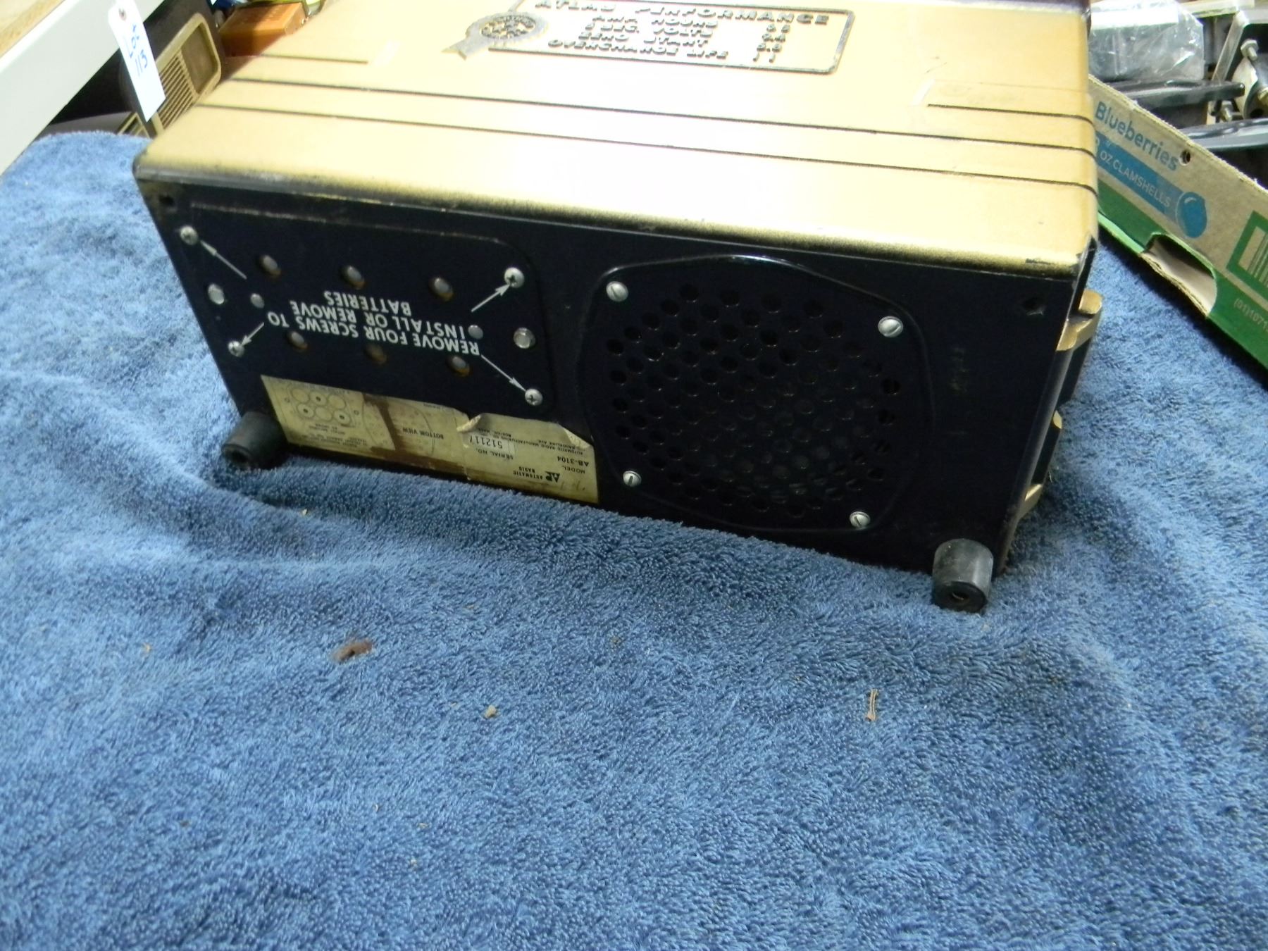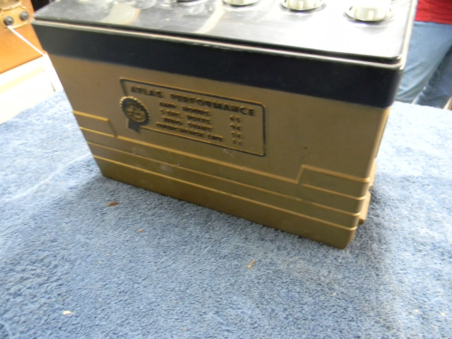 Atlas HD-24 novelty transistor radio in form of car battery, missing 2 feet