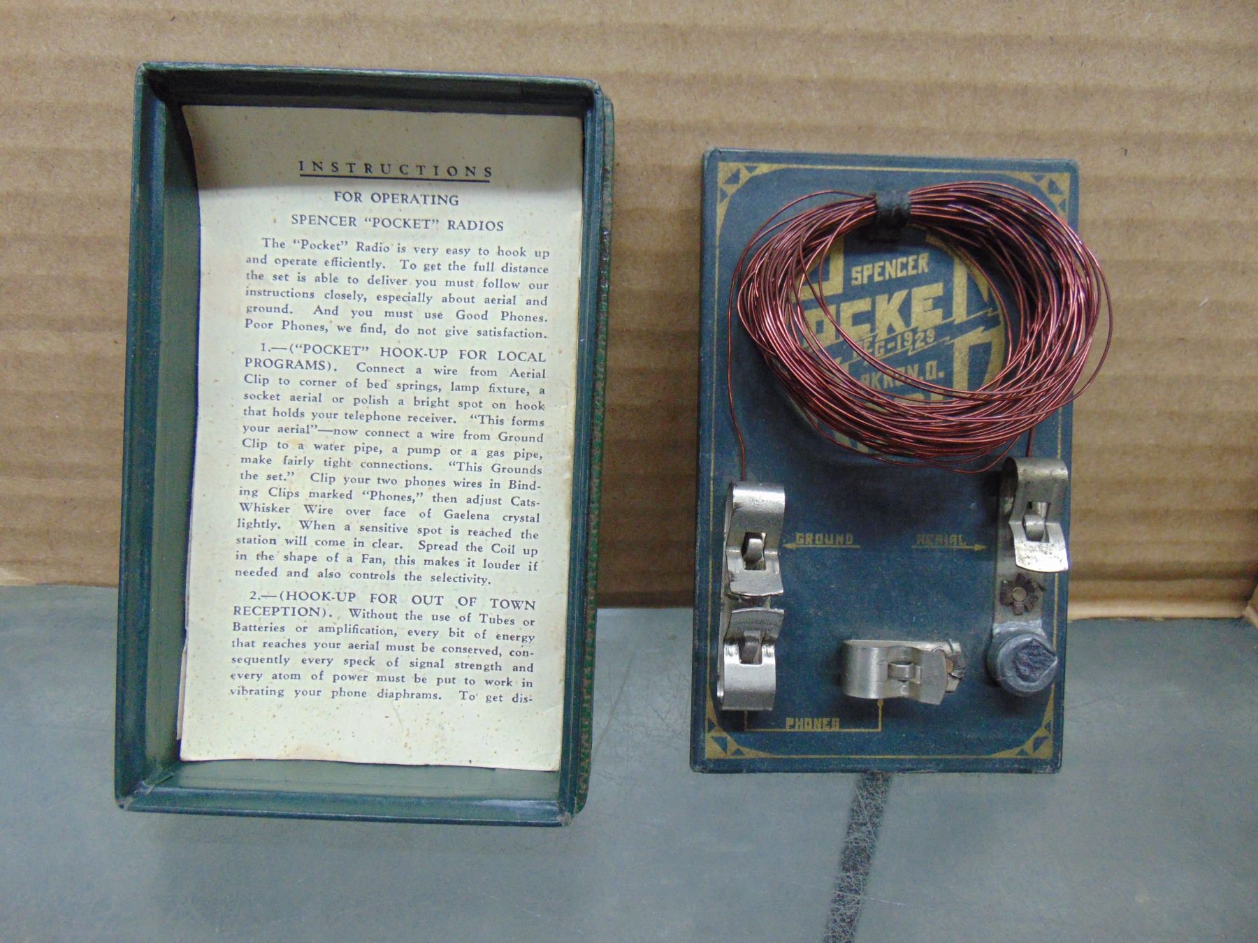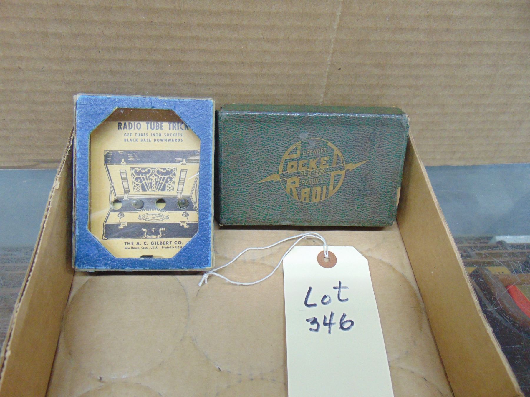 Two items: 1) radio tube trick game; 2) Spencer pocket crystal radio