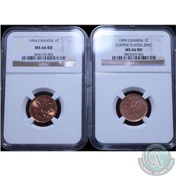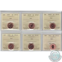221 - 1-cent 1985 Blunt 5, 1989, 1990, 1992, 1994, 1999 & 2000 ICCS Certified MS-65 Red. 7pcs.Colonial Acres Coins Ltd.