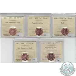 1-cent 2002,2003,2003P,2009 Magnetic, 2010 Non Magnetic, 2011 & 2012 Non Magnetic All ICCS Certified MS-66 Red. 7pcs
