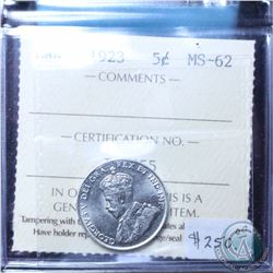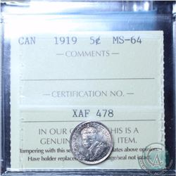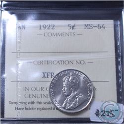 5-cent 1922 Near Rim ICCS Certified MS-64! A choice coin with rolling Luster fields.