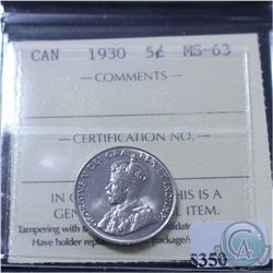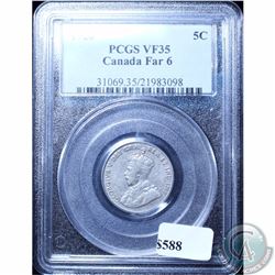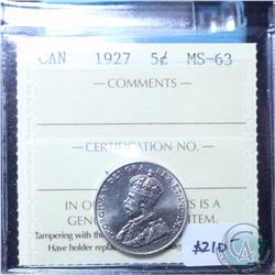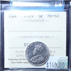 5-cent 1936 PCGS Certified MS-65. Soft Satin Fields accented by mint bloom Luster makes this last year issue George 5th 5-cent a choice example.
