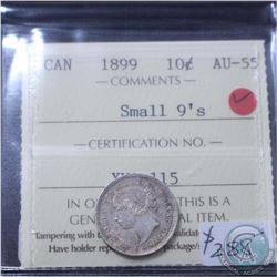 10-cent 1899 Small 9's ICCS Certified AU-55