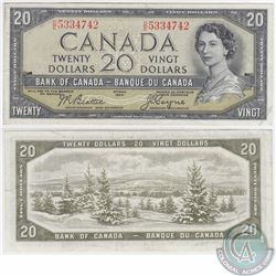 1954 Bank of Canada $1000. BC-44a, Beattie-Coyne, S/N: A/K0059336, BCS EF-45, Original. A respectable example of a scarce signature combination.