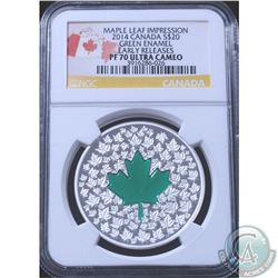 RCM Issue: 2013 Canada $20 Maple Leaf Impression Green Enamel Fine Silver Coin NGC Certified PF 70; Ultra Cameo: Early Releases (TAX Exempt)