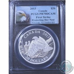 RCM Issue: 2013 Bald Eagle Protecting her Nest $20 Canada PCGS Certified PF70 Ultra Heavy Cameo.Firs