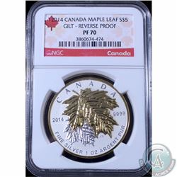 RCM Issue: 2014 Canada 1oz. Maple Leaf $5 Gilt-Reverse Proof NGC Certified PF-70 (Tax Exempt)