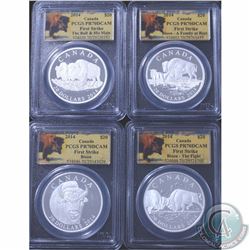 RCM Issue: 2014 Canada $20 Fine Silver Bison Series 4-coin set all FIRST STRIKE PCGS Certified PR-70