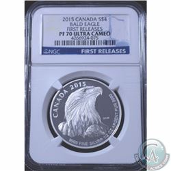 RCM Issue: 2015 Canada $4 Bald Eagle 1/2 oz. Fine Silver NGC Certified PF 70; Ultra Cameo FIRST RELEASES(Tax Exempt)