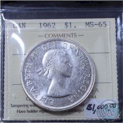 Silver $1 1962 ICCS Certified MS-65. Tied for the Finest Known