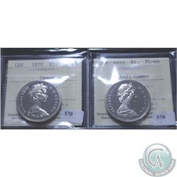 Nickel $1 1970 & 1972 ICCS Certified PL-66 Cameo. 2pcs.