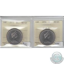 Nickel $1 1973 & 1974 ICCS Certified MS-65. 2pcs