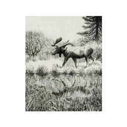 [Canadian b. 1913] WALKING BULL MOOSE AND COW Etching on paper; Ed. #35/50 6.5 x 9.75 in. BULL MOOSE AND REFLECTION
