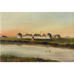 [Canadian 1854-1907] FORT GARRY; 1869 Oil on canvas 12 x 18 in. Initialed, titled & dated.