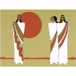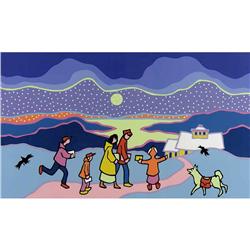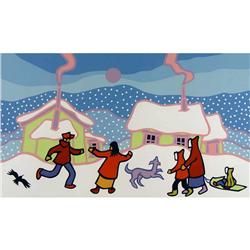 [Canadian b. 1926] NORTHERN PLAY; 1988 Colour serigraph on paper; Ed. #69/200 10 x 16.5 in. Signed, titled, dated & editioned.