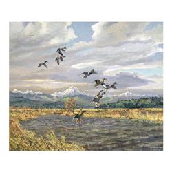 [Canadian 1914-1970] UNTITLED (MALLARDS LANDING) Oil on canvas 20 x 24 in. Signed.