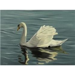 [Canadian b. 1939] MUTE SWAN / EARLY START Oil on canvas (2) Each 12 x 16 in.