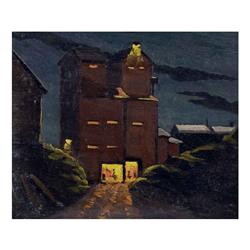 [Canadian 1903-1977] POWER DEVELOPMENT, PERIBONKA; 1952 Oil on panel 8.5 x 10.75 in. Signed, titled & dated.