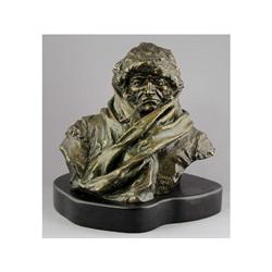 [Canadian RCA 1869-1937] LE PERE FLEURY, ARTHABASKA; 1908 Bronze sculpture on a wooden base 10.25 x 11.75 x 9.5 in.