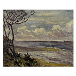 [Canadian CGP, G7, OSA, RCA 1882-1974] GEORGIAN BAY; 1920 Oil on canvas 10.5 x 13 in. Signed; Signed, titled & dated vers