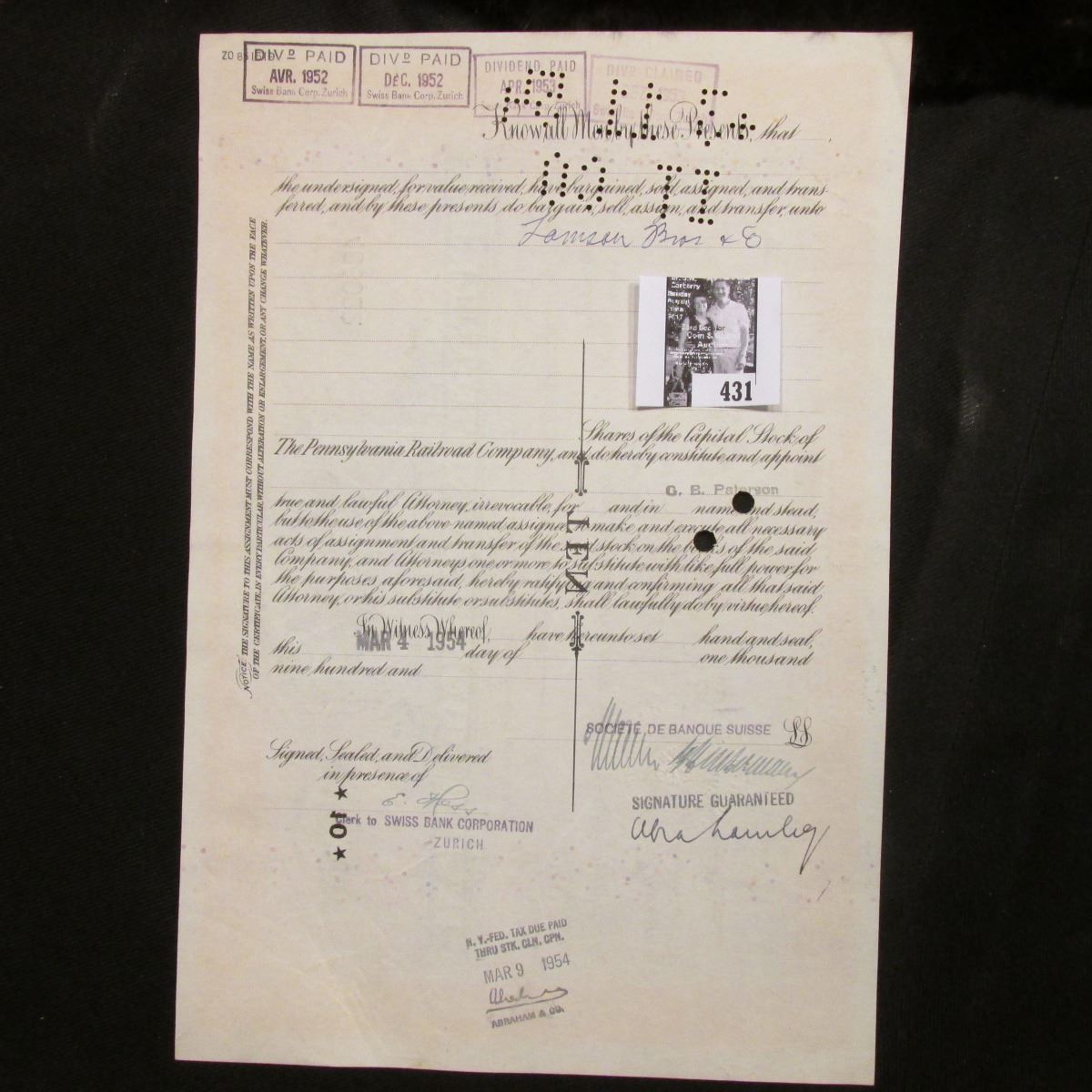 Absentee bidders will receive an invoice detailing their successful bid and shipping charges. Payment must be made within five days of receipt of notification and lots will be mailed after payment in full has been made.