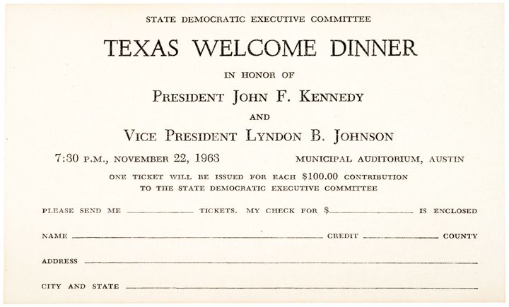 November 22, 1963 Dinner Ticket: John F. Kennedy Assassination Night