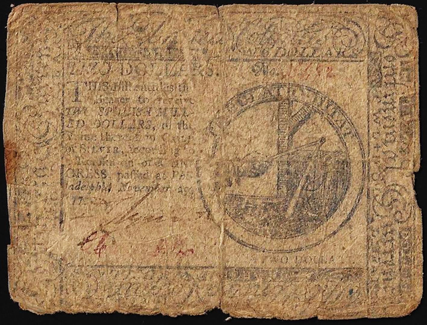 One November 29, 1775 $2 Continental Currency Note - Split.